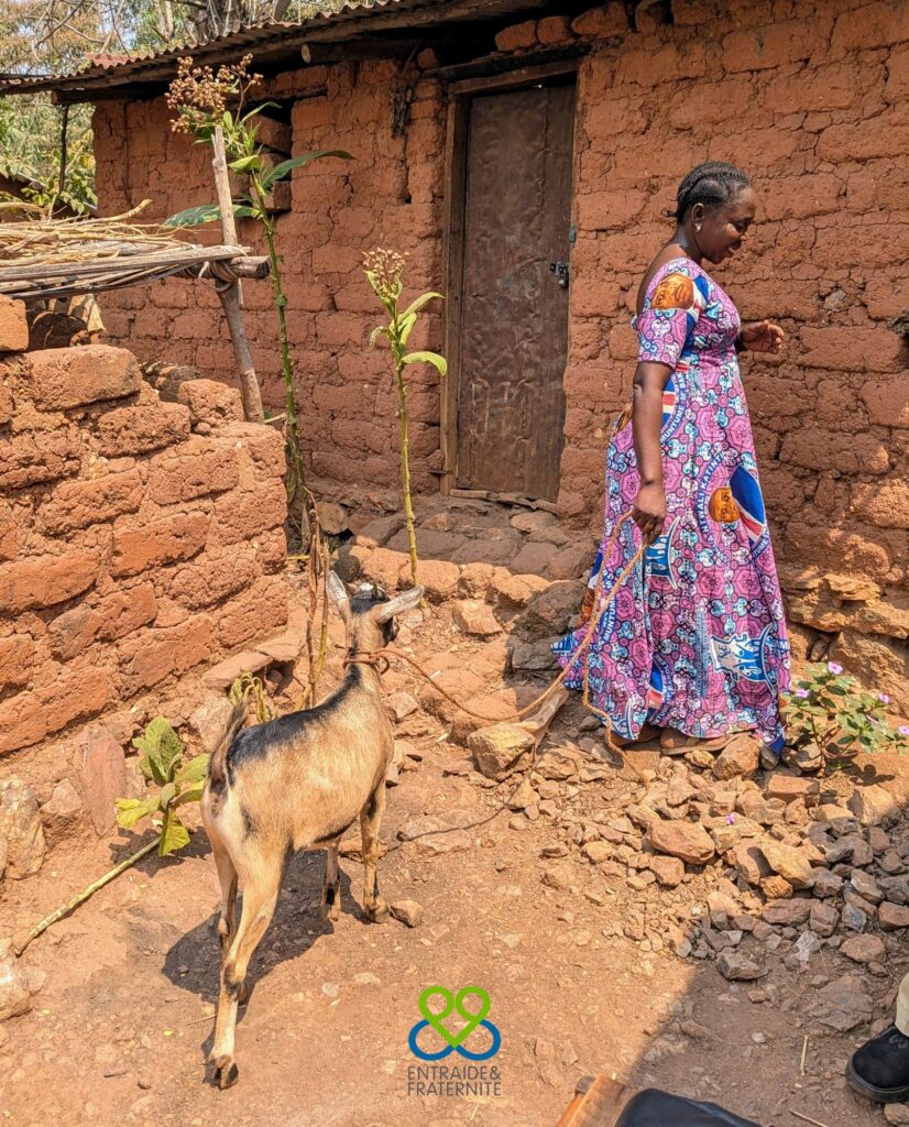 “Les chèvres reçues sont une véritable banque pour moi,” confie Jeanette M’Mutonga, une bénéficiaire de Kabare. “En plus de contribuer à la fertilité des sols de mon champ, leurs petits me permettront de démarrer une petite activité pour subvenir aux besoins de mes enfants.”